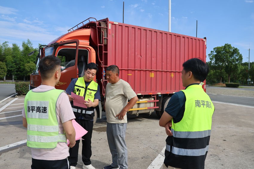 活动现场氛围热烈,内容丰富实用。咨询台前,醒目的宣传展板吸引了众多过往司乘驻足学习。身着志愿者马甲的工作人员,热情主动地向货车司机、旅客发放“高速公路行车安全知识宣传单”。内容不仅涵盖行车安全“五严禁”、极端天气应对、紧急情况处理等行车要点,更具体解读了宣传展板“会报警、会灭火、会逃生”等关键应急技能。