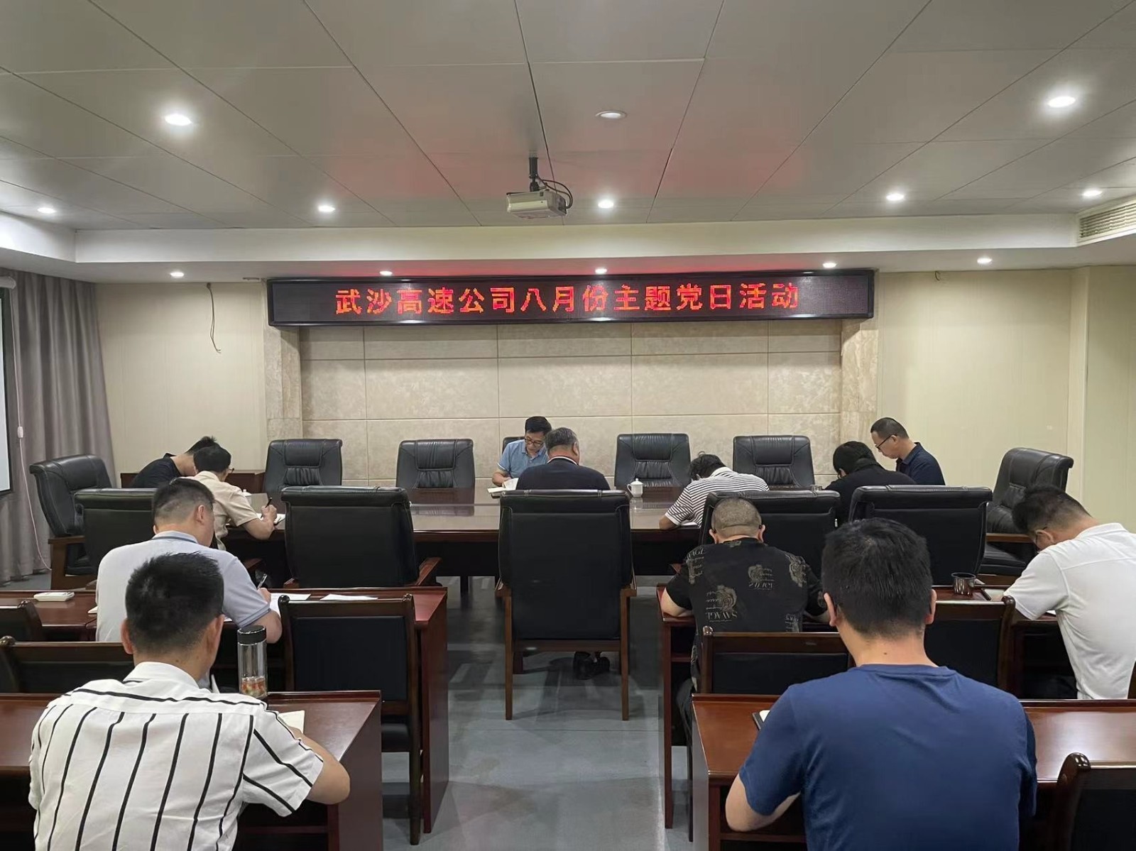 8月17日上午,武沙高速党支部书记朱正龙主持召开主题党日学习。公司党员、入党积极分子参加会议。