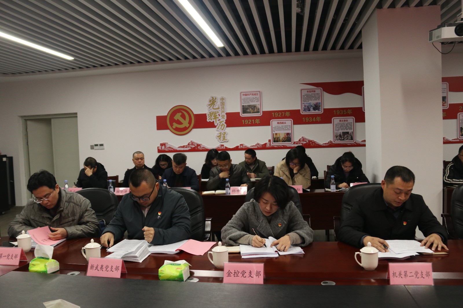 最后与会人员对各党支部书记抓基层党建工作情况进行了民主评议。