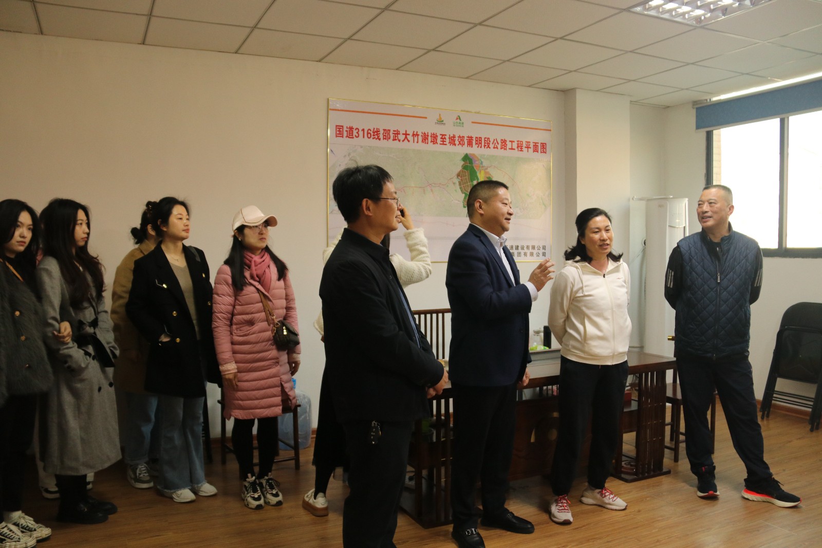 一行人参观了集团在建重点项目——国道G316线邵武大竹谢墩至城郊莆明段公路工程。该项目的建设可以完善邵武市公路路网骨架系统,分离过境交通流,提升区域道路通行能力,改善区域交通环境,提高公共服务均等化水平,带动沿线地块产业的发展,对邵武市经济的发展具有十分重要的作用。通过听取介绍、现场交流等方式使大家详细了解了该项目的建设情况。