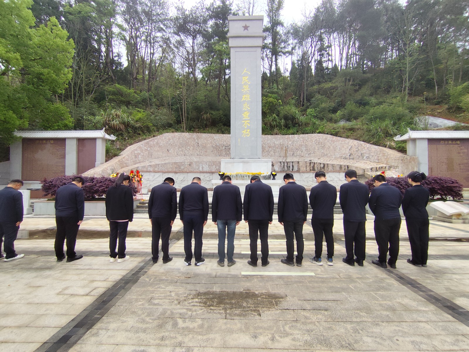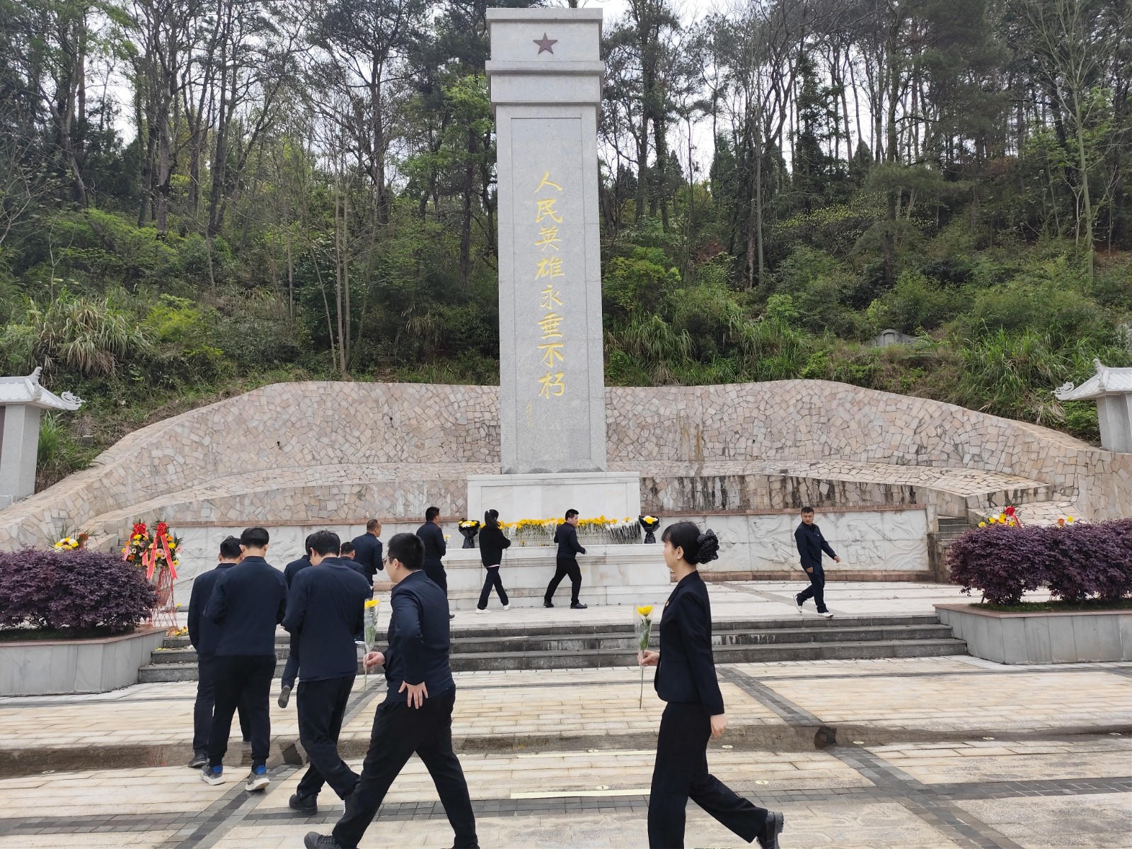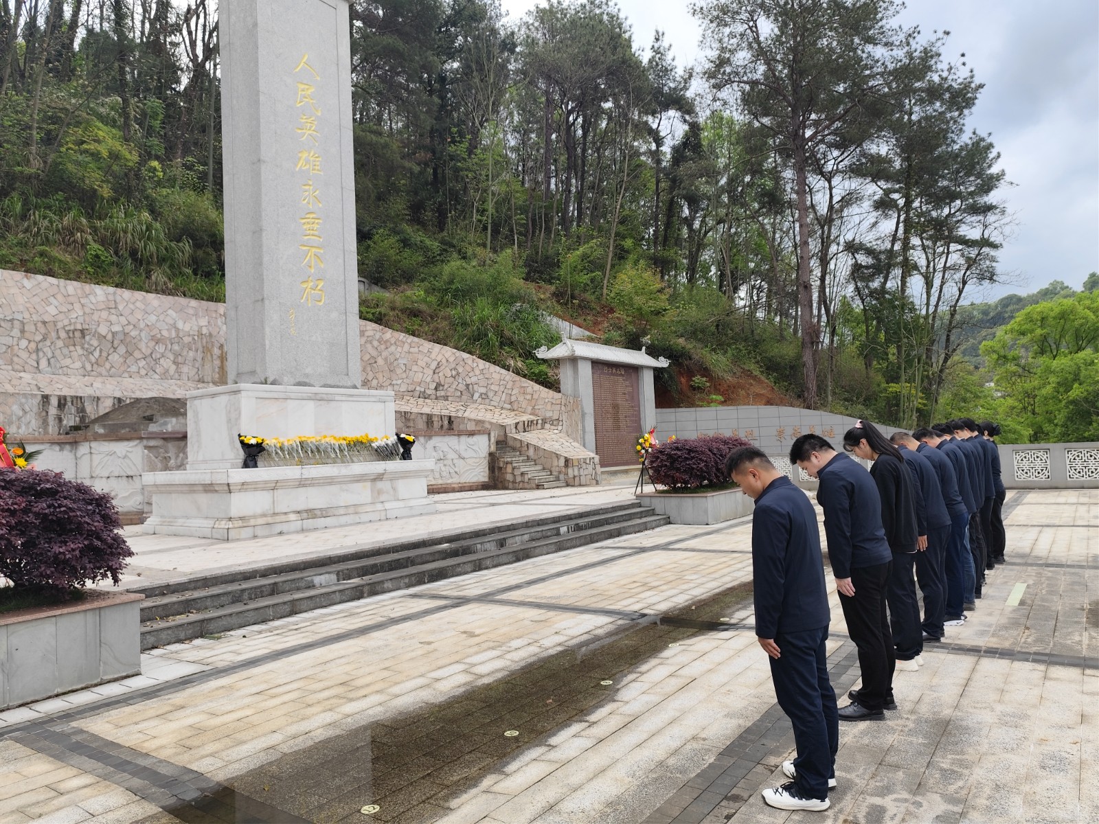 活动中,项目全体党员前往顺昌县龙山烈士纪念碑缅怀革命先烈,他们神情肃穆依次为革命烈士陵园敬献鲜花,缓步依次绕碑一周瞻仰烈士纪念碑,以表达在新时代继承先烈遗志,发扬革命传统的信心和决心。最后党员们在纪念碑前肃立默哀,追思龙山红军七十二革命先烈的丰功伟绩,表达深切哀思。