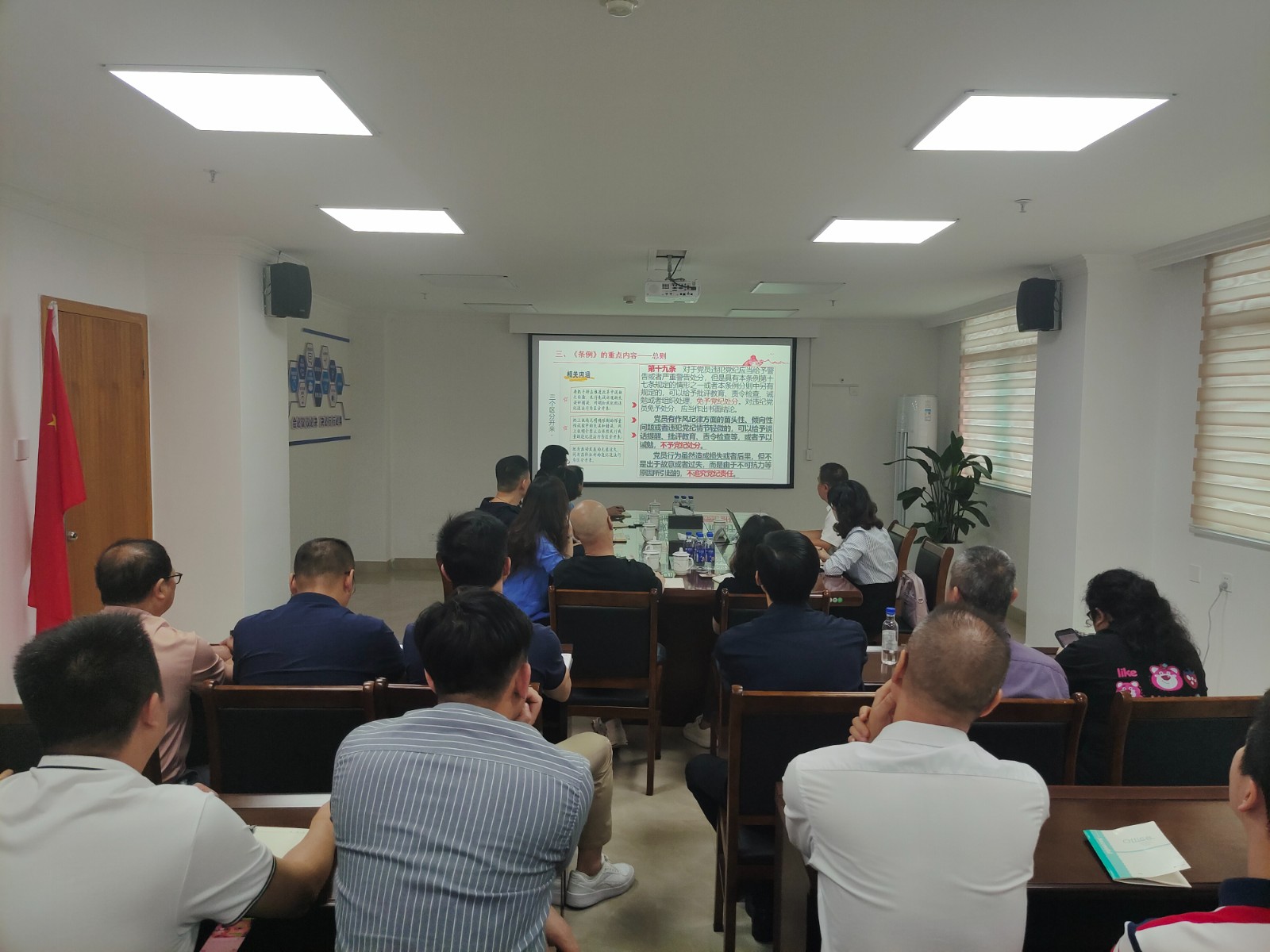 课上,张捷同志围绕新修订的《中国共产党纪律处分条例》,从《条例》的历史沿革、修订背景、重点内容、贯彻执行等方面带领全体参会人员深入学习,通过对《条例》的理解、查摆问题差距、列举典型案例和分享工作经验等方式进行了讲解,教育引导全体党员干部加强对党的纪律建设重要性的认识,加强自我约束、提高免疫能力,做到严守纪律规矩,不碰底线红线,真正做到学深悟透、笃行做实。同时结合公司发展实际,重申“六项纪律”,对公司纪律建设各项工作进行了强调和部署,要求全体党员干部要将党纪学习教育取得的阶段性成果转化为干事创业的思想自觉和实践自觉,增强纪律意识和规矩意识,严防诱惑之微、严堵蜕变之渐、严拒气节之失。