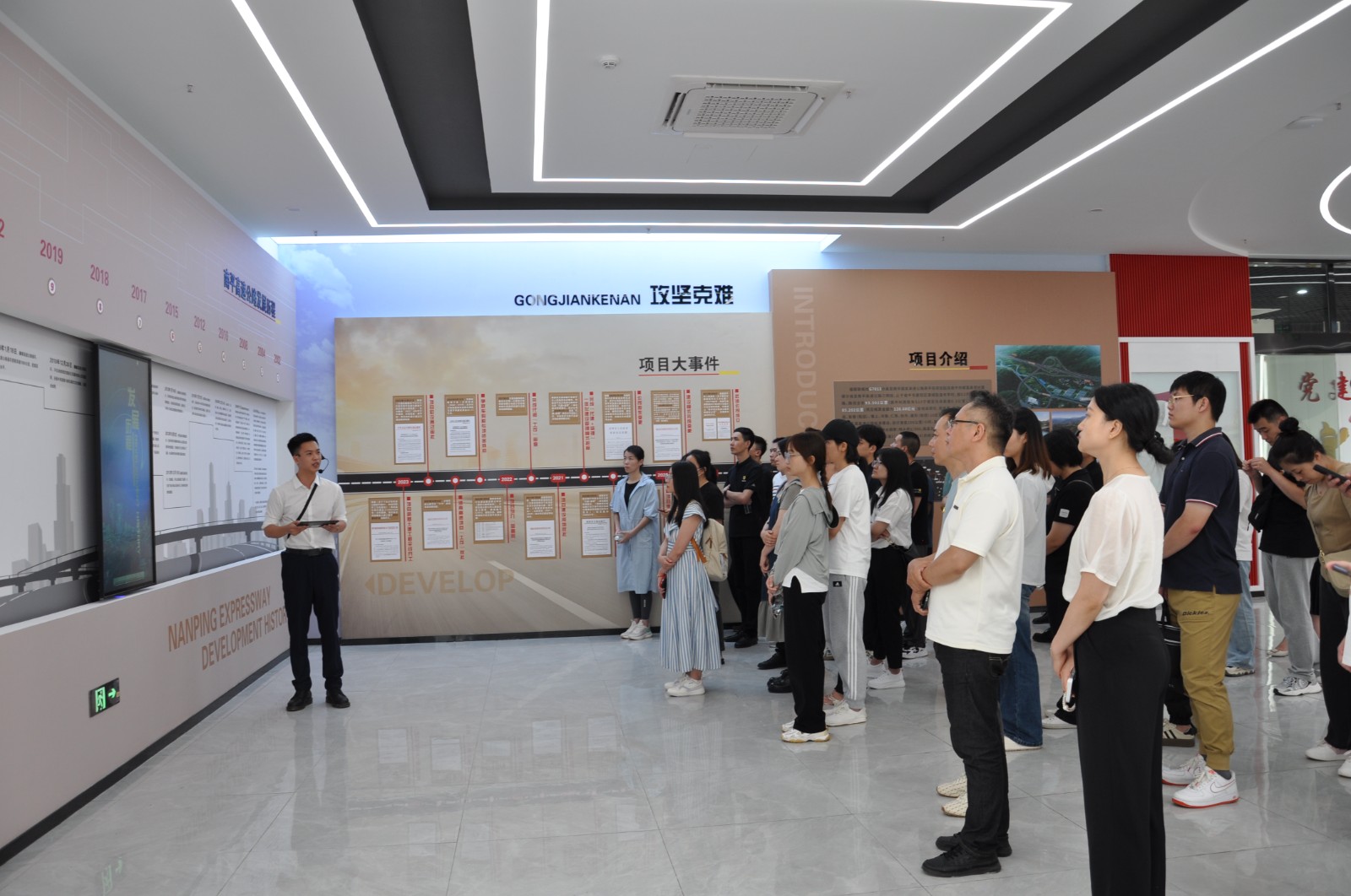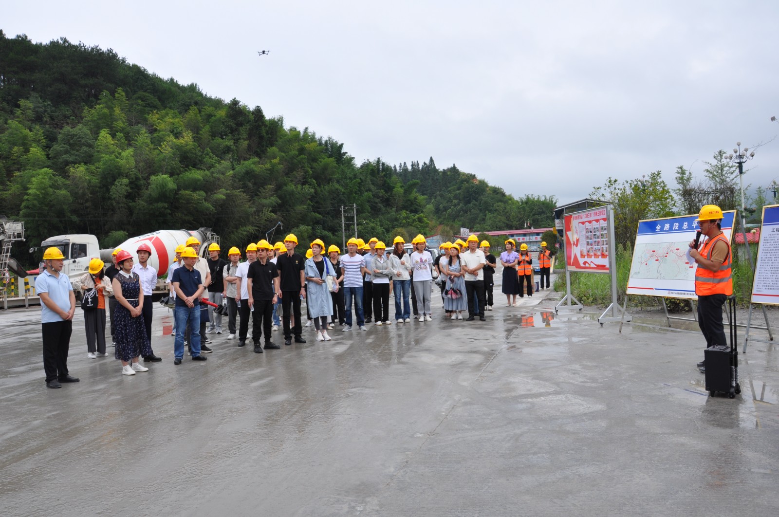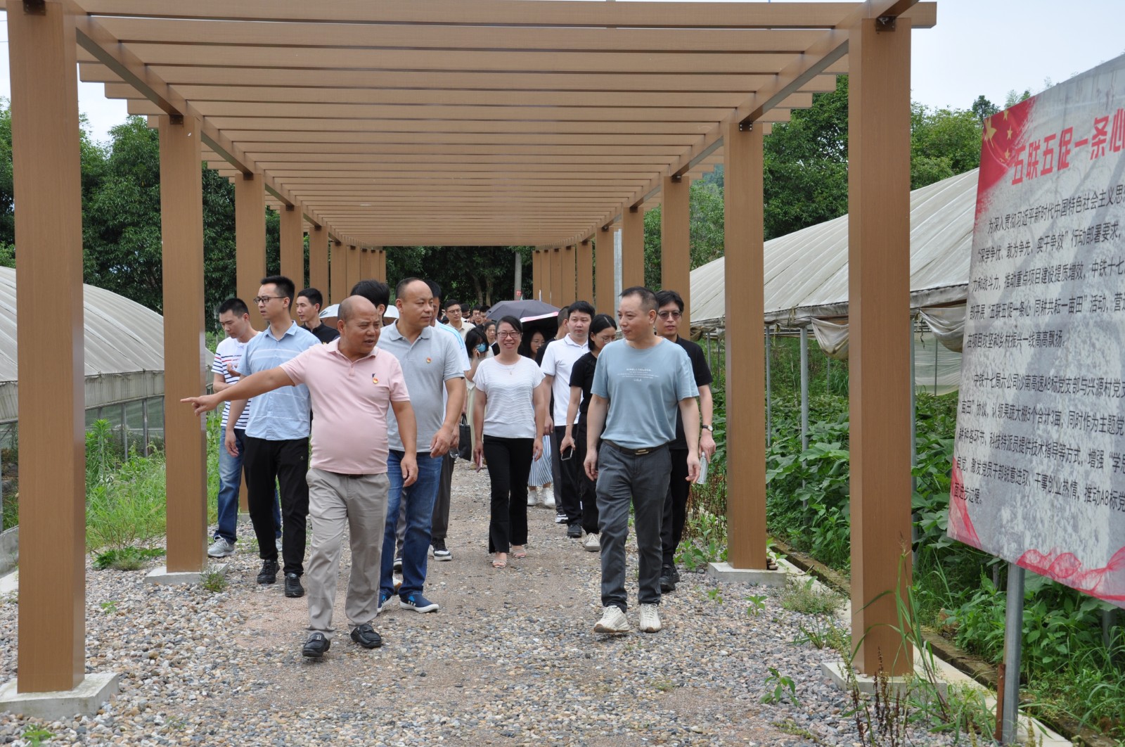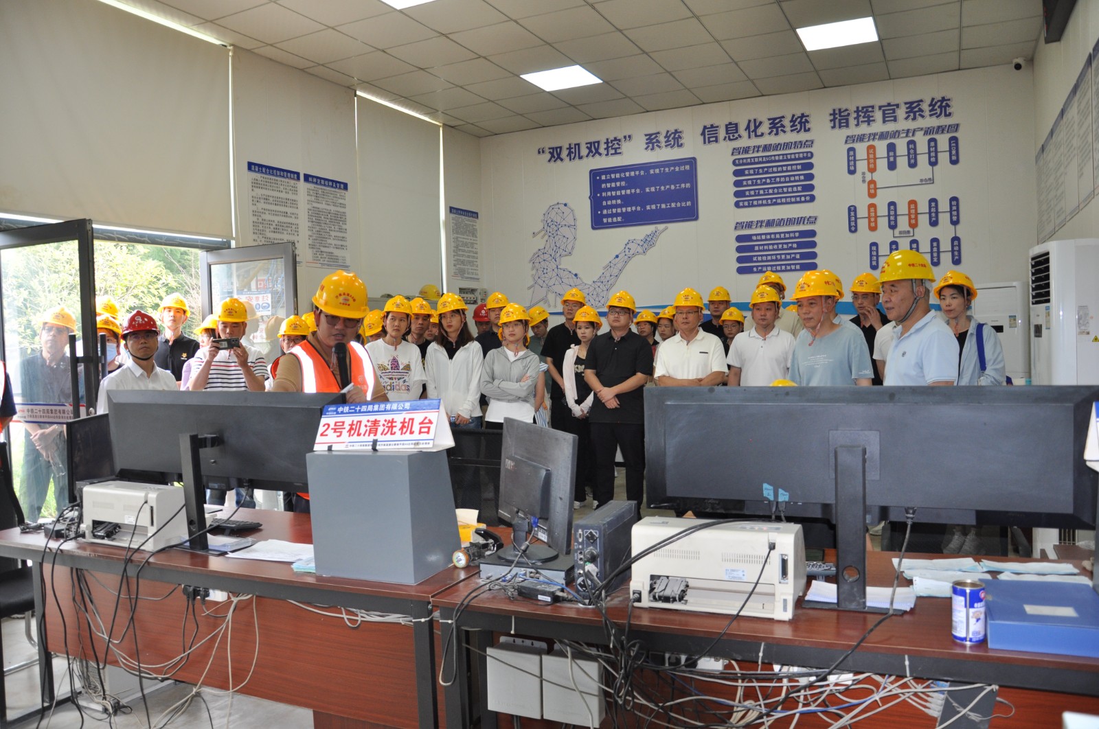 现场教学环节,党务工作者、发展对象前往沙南高速项目 A6、A8 标段工地参观学习党建工作,通过参观工地集控中心、项目部与所在村共建的农产品基地、平安二十四小时驿站、党建安全培训基地学习央企在工地党建方面的好经验好做法。
