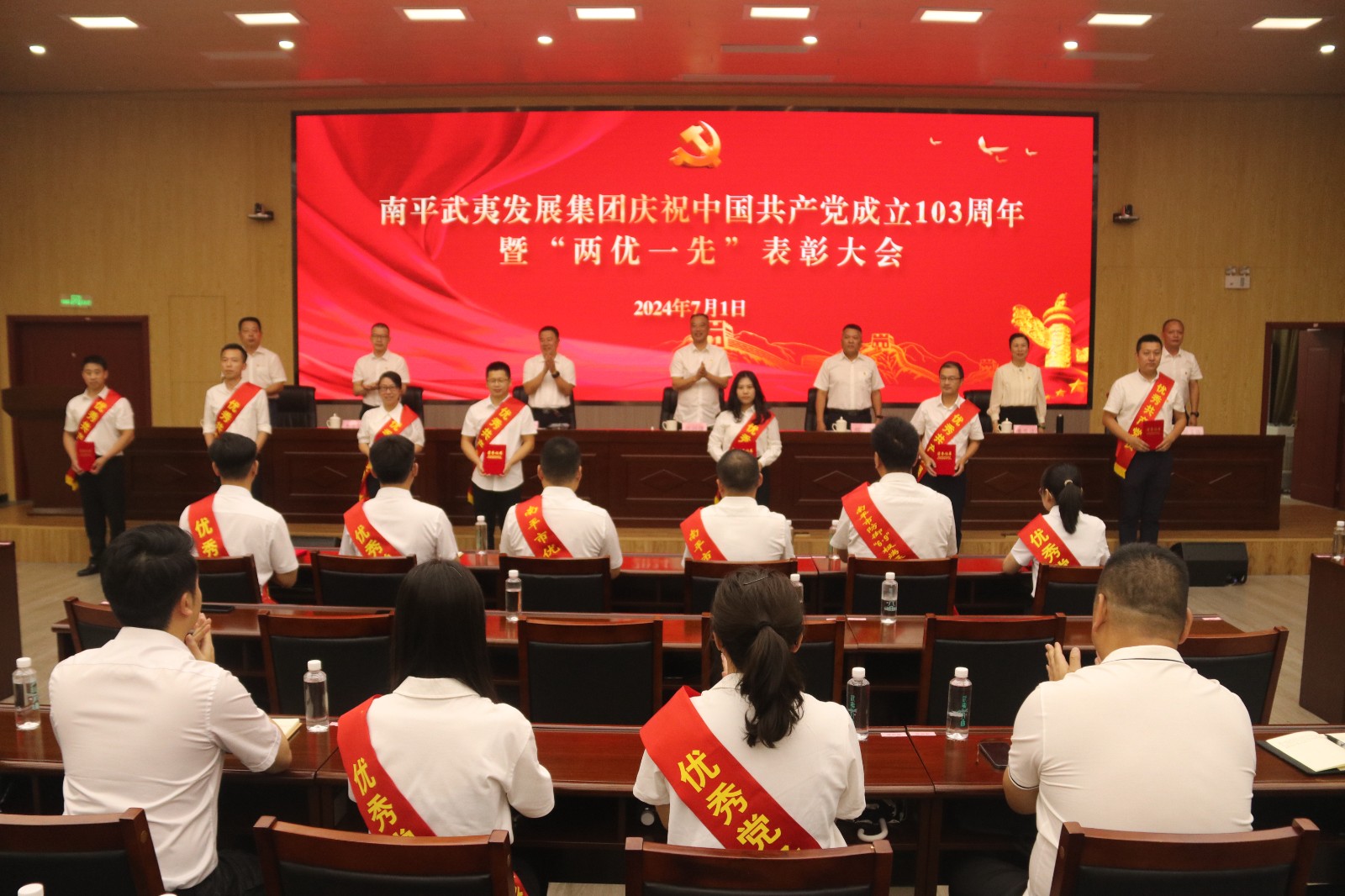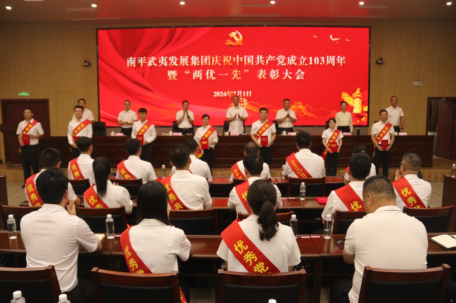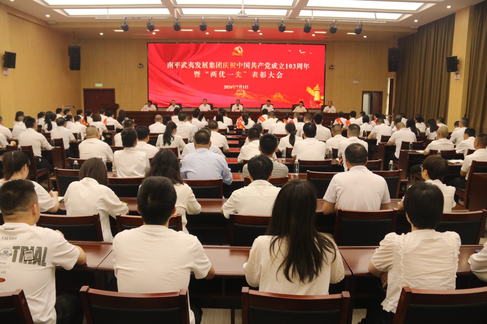 为庆祝中国共产党成立103周年,表彰一批在集团事业发展中涌现出来的先进基层党组织、优秀共产党员和优秀党务工作者.7月1日,武夷发展集团召开庆祝中国共产党成立103周年暨“七一”表彰大会。集团领导江训强、张捷、黄荣琪、李育昕、张孟媵、金国平及所属各党支部书记、二级子企业董事长、总经理,受表彰的党员、集团机关全体员工参加会议。会议由集团党委副书记、总经理胡宗浩主持。