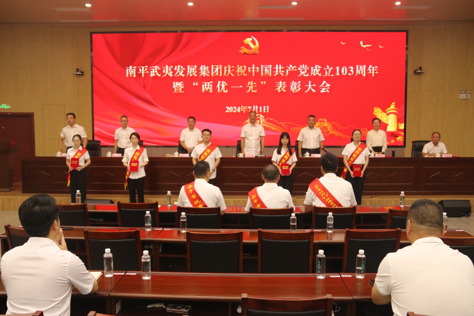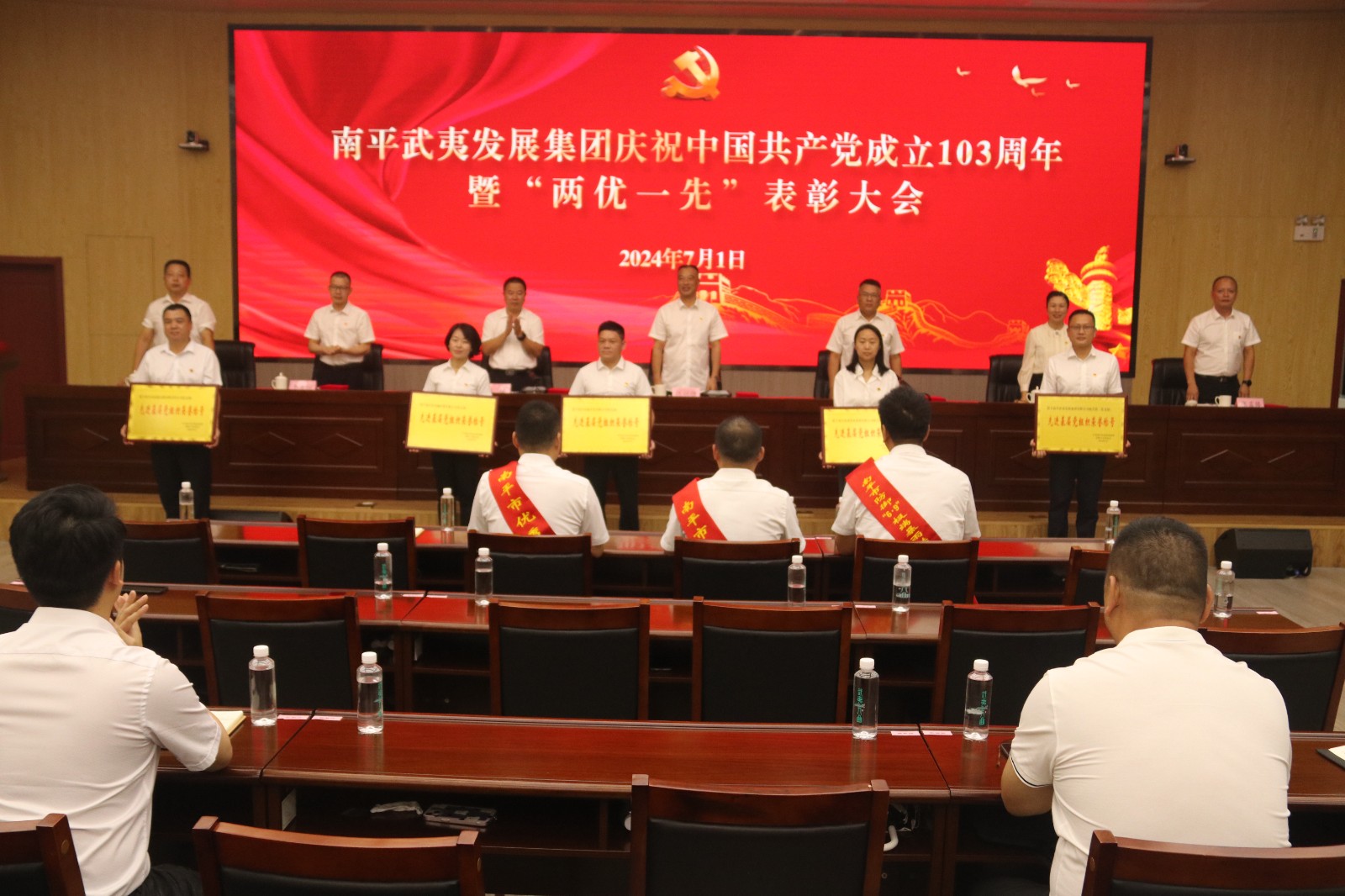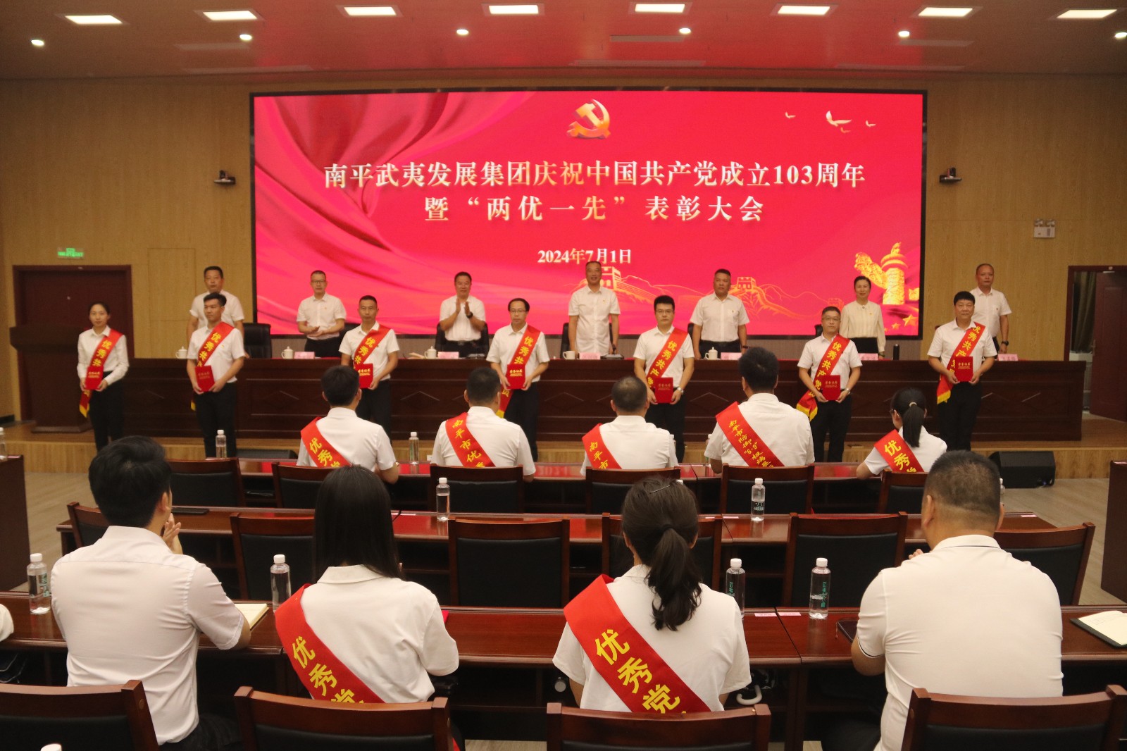 为庆祝中国共产党成立103周年,表彰一批在集团事业发展中涌现出来的先进基层党组织、优秀共产党员和优秀党务工作者.7月1日,武夷发展集团召开庆祝中国共产党成立103周年暨“七一”表彰大会。集团领导江训强、张捷、黄荣琪、李育昕、张孟媵、金国平及所属各党支部书记、二级子企业董事长、总经理,受表彰的党员、集团机关全体员工参加会议。会议由集团党委副书记、总经理胡宗浩主持。