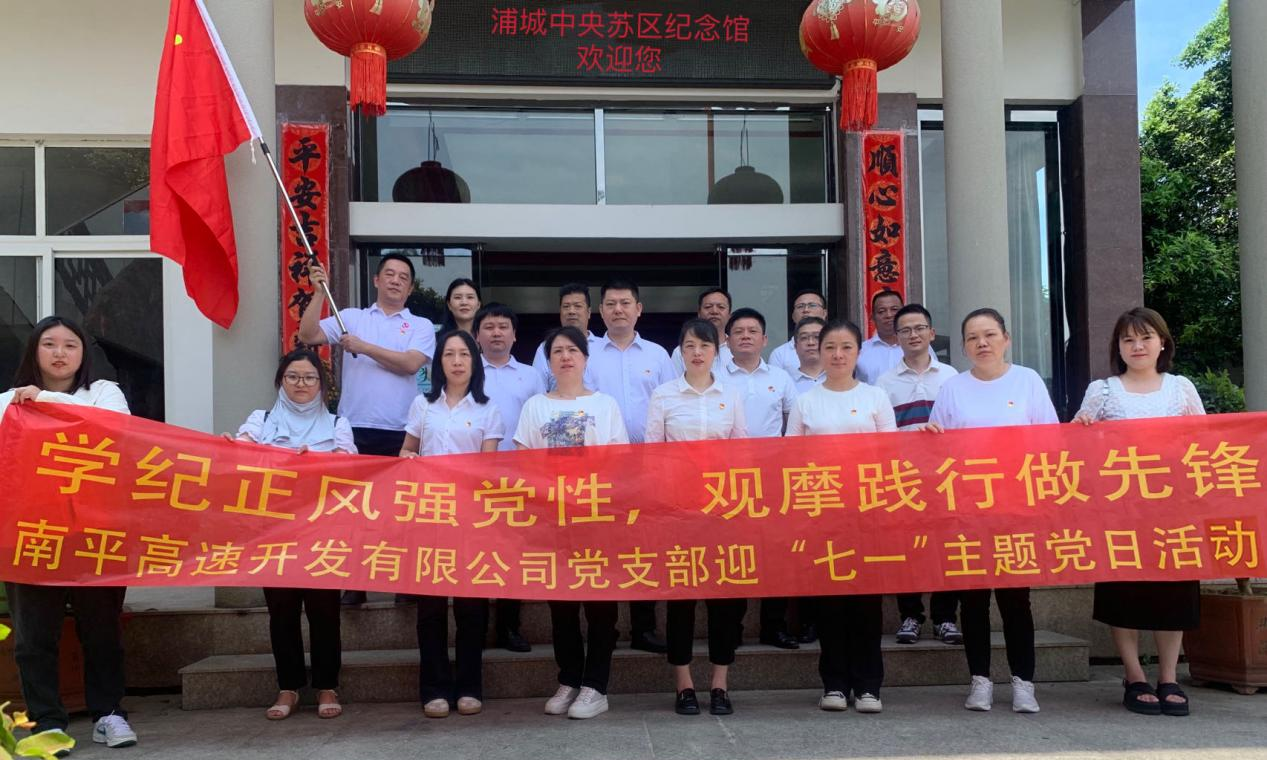 为庆祝中国共产党成立103周年,贯彻落实习近平新时代中国特色社会主义思想,深入推动党纪学习教育走深走实。7月11日,南平高速开发公司党支部组织全体党员、入党积极分子及业务骨干代表前往浦城县廖俊波家风家教展示馆及中央苏区纪念馆开展“学纪正风强党性,观摩践行做先锋”主题党日活动。