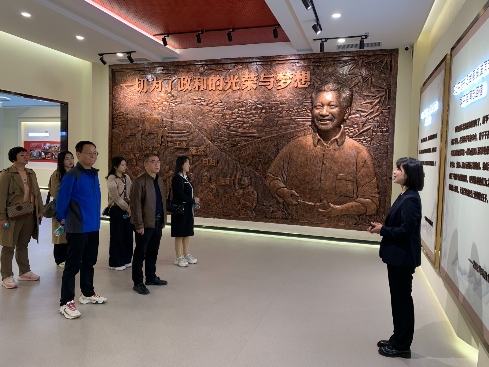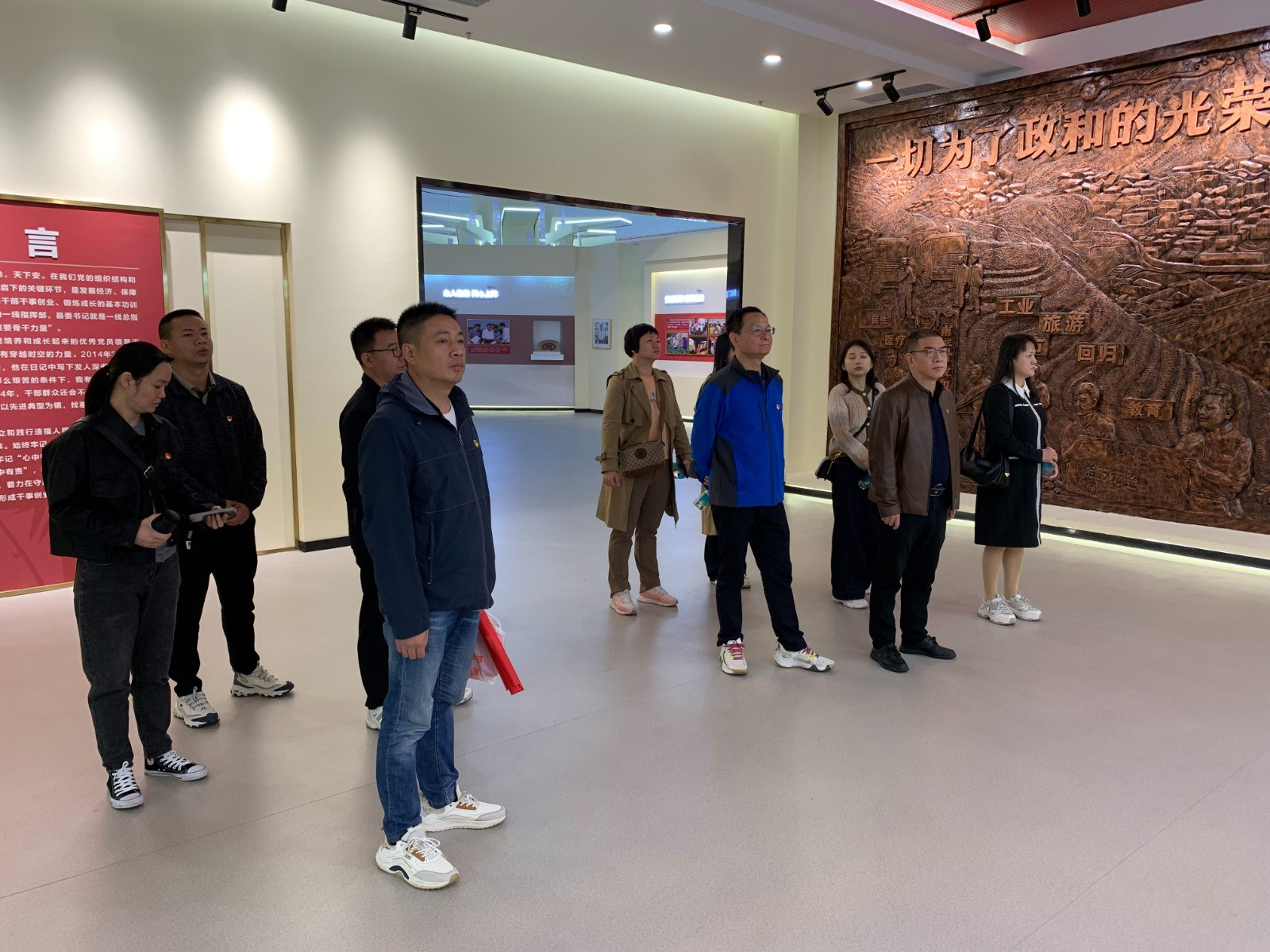 廖俊波同志是全国优秀县委书记、时代楷模,他用生命践行了“忠诚、干净、担当”的要求,是新时代共产党人的光辉典范。展示馆内,一幅幅真实的图片、一件件珍贵的实物、一段段生动的影像,全景式再现了廖俊波同志对党忠诚、心系群众、忘我工作、无私奉献的感人事迹和崇高精神。同志们跟随讲解员的引导,认真聆听、驻足观看,深刻感悟廖俊波同志“能在现场就不在会场”的务实作风、“背着石头上山”的拼搏劲头以及“认准的事,背着石头上山也要干”的坚韧执着。