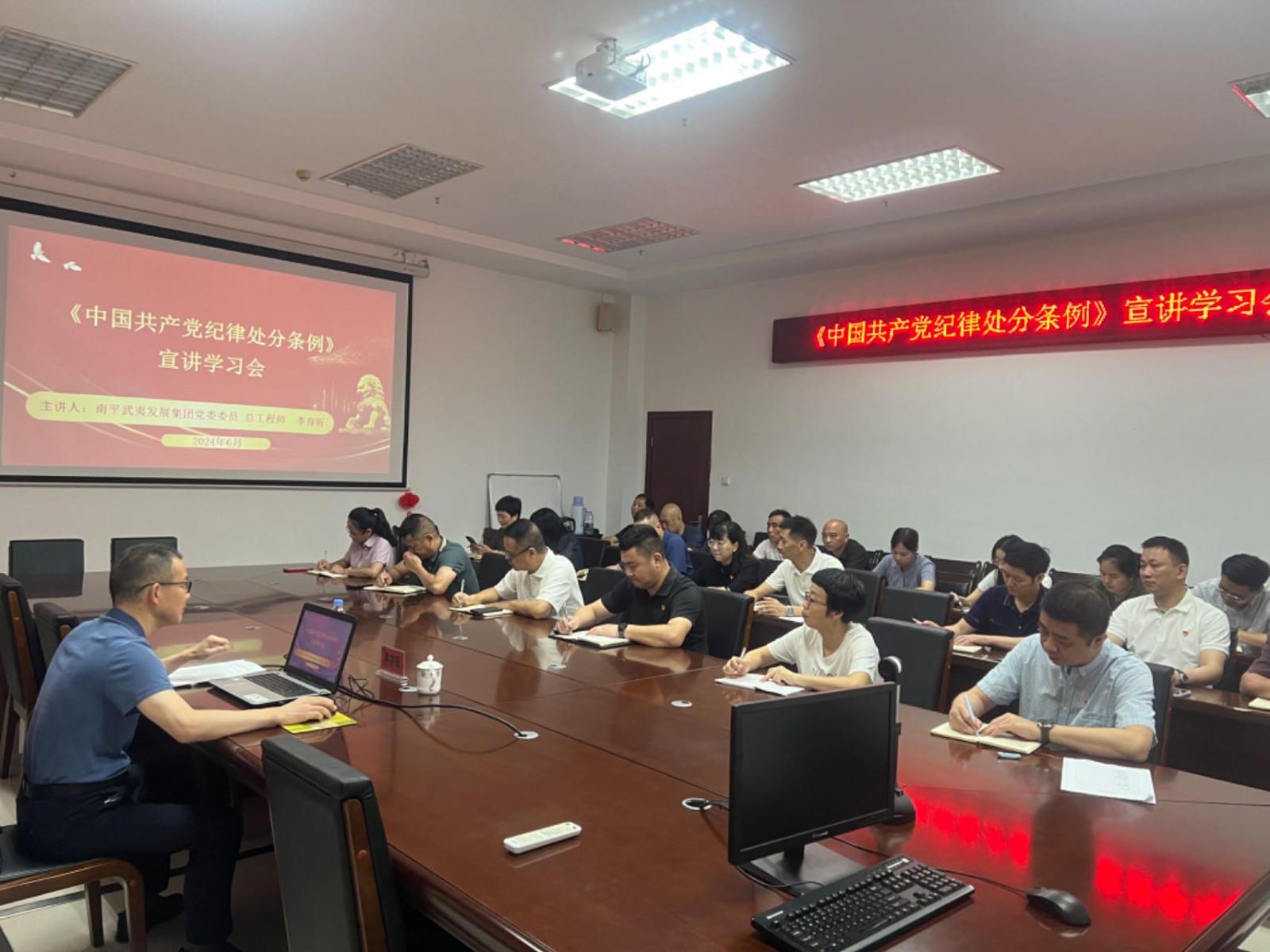 为深入学习贯彻习近平总书记关于党纪学习教育的重要讲话和重要指示精神,近期,南平武夷发展集团党委委员、总工程师李育昕到南平公交公司讲授党纪学习教育专题党课,深入解读新修订《中国共产党纪律处分条例》,引导全体党员不断增强纪律意识、提升党性修养,扎实推进党纪学习教育走深走实、见行见效。